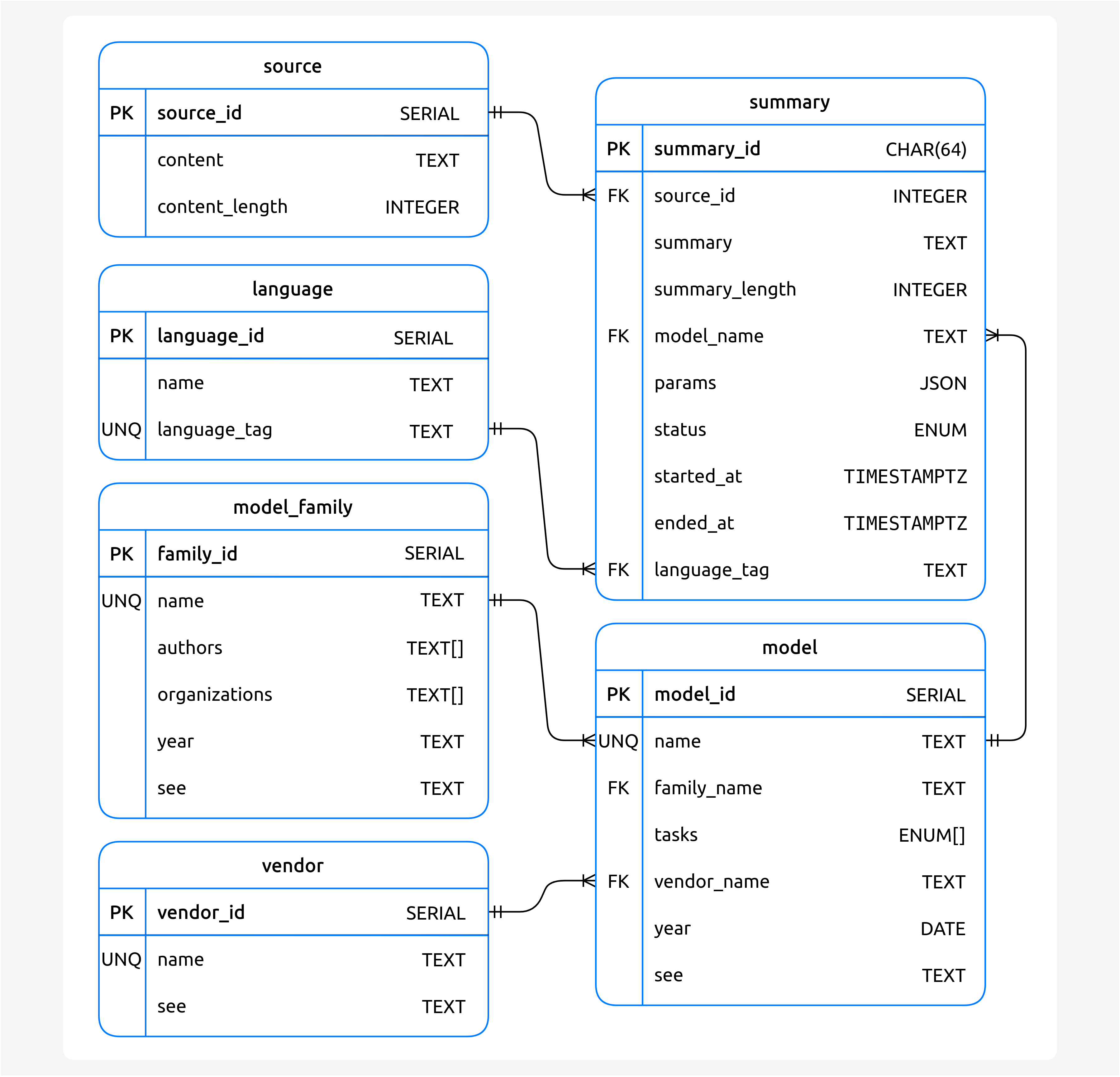 Fig. 7 Summaries database table schema.