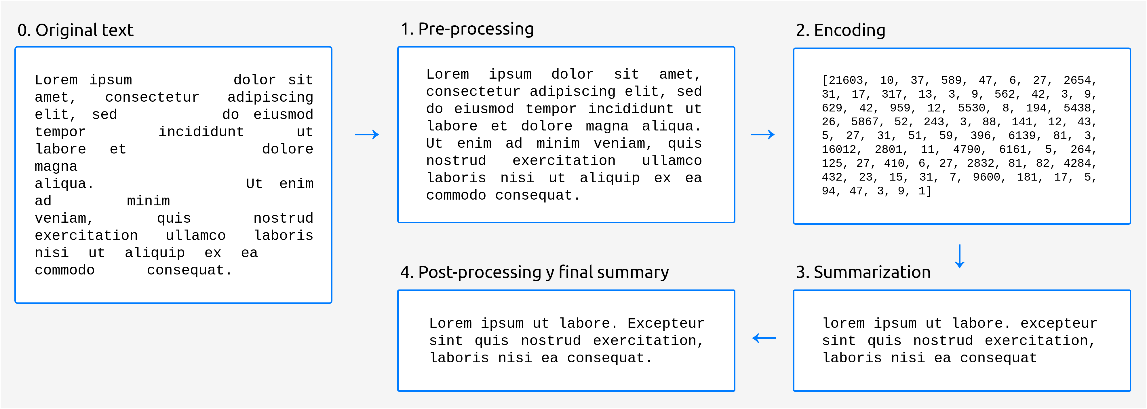 Summarization: in this stage is when the actual generation of the summary takes place. We currently use Google’s T5 model implemented by Hugging Face.